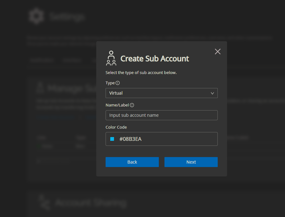 A Virtual sub account is not shared with any external email. It is used by the main account holder as an internal segregated wallet, often for higher-risk or experimental trading strategies.