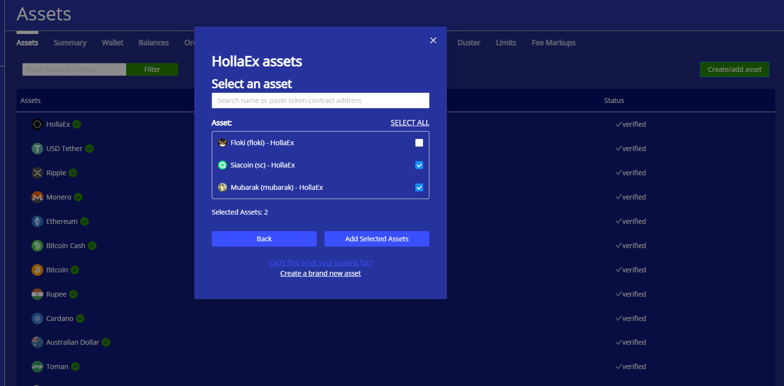 Now that HollaEx® has added over 200+ new asset, it can be tedious to add each one-by-one. Muscat makes this far less tedious.